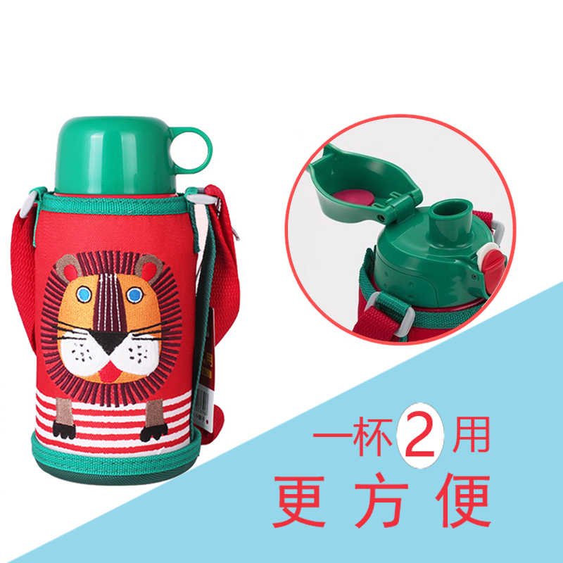 Japan homegrown 2018 tiger cards Children's insulated cup Lion double lid Dual-cover Students Direct Drinking Cup replaceable straw lid