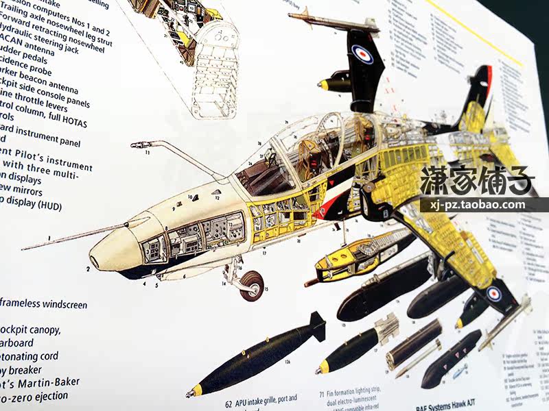 Eagle Hawk trainer fighter cross-sectional view Adur turbofan engine flip chart fighter poster