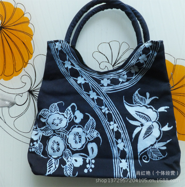 Hmong wax dyeing process package Guizhou characteristics handbag wax dyed arc bag hand wax dye bag