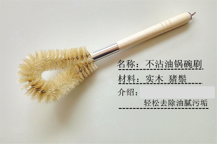 Bristle pot brush does not stick to oil does not hurt the pot natural wooden handle kitchen cleaning supplies pot dish brush