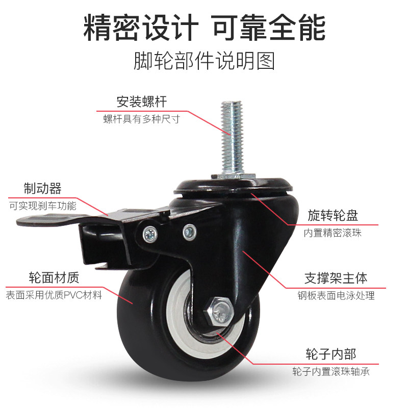 1 5 inch flat top black universal wheel 1 5 inch flat top black orientation wheel 1 5 inch flat top black double brake wheel 1 5 inch wire rod M8 * 25 black universal wheel 1 5 inch wire rod M10 * 2