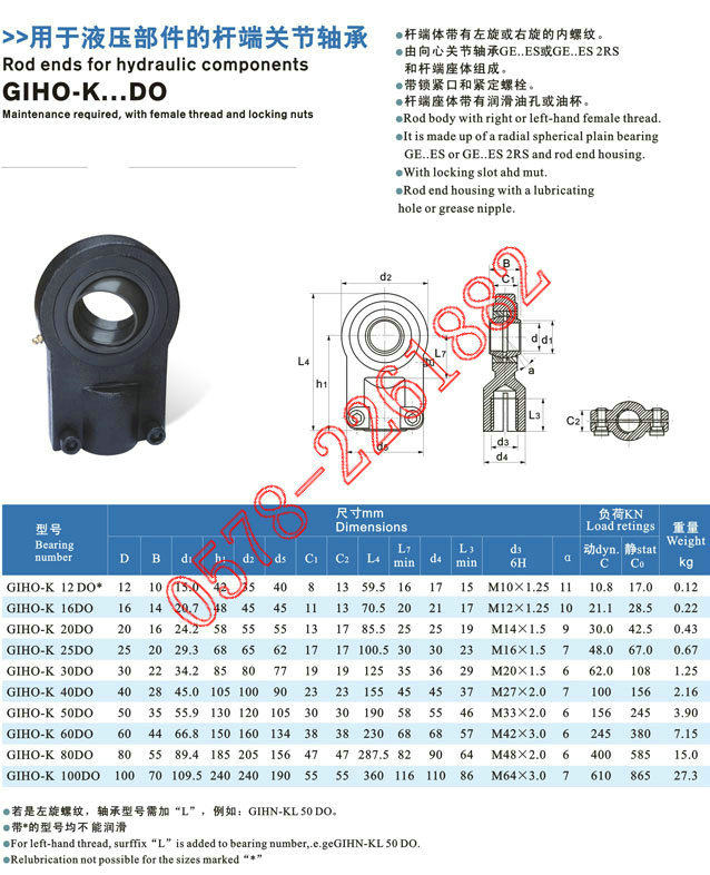 GIHO-K50DO hydraulic ram earrings bearing GIHO-K60DO GIHO-K80DO GIHO-K80DO GIHO-K100DO