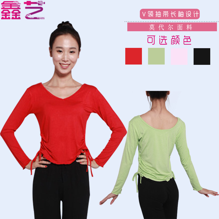 Adult long sleeve round collar with lace on both sides with lace dance practice Costume Square Dance New Blouses Latin dance costumes