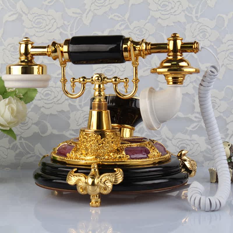 Antique telephone Euro - style field telephone seat jade metal retro household electric cable phone