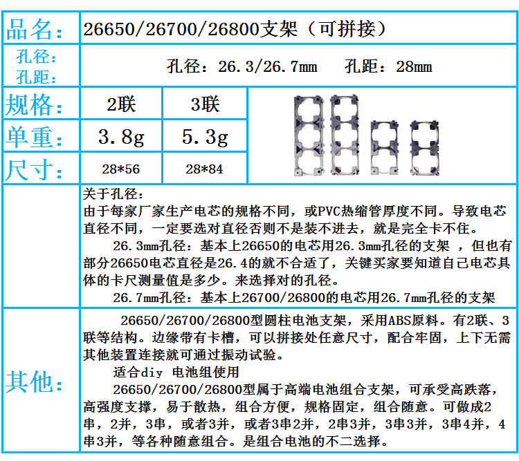 26650 26650 26700 26800 bracket fixed combined splicing buckle connecting seat electric core card model manufacturer