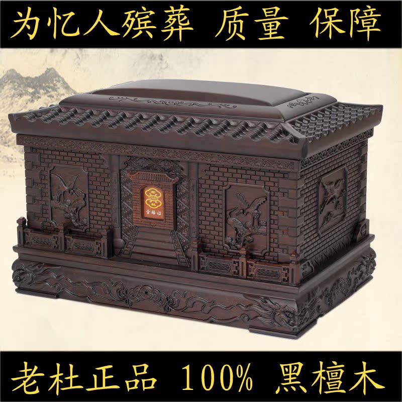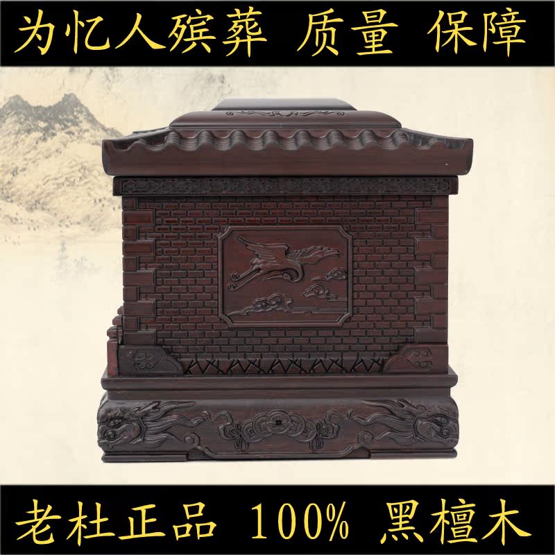 High-grade authentic ash box black sandal crane to the temple pure solid wooden ash box coffin old Du
