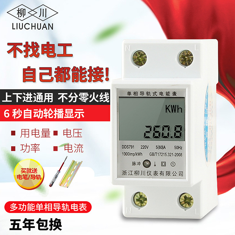 Rental room Single-phase 220v rail type electronic LCD counter Electric meter Household smart meter Distribution box meter