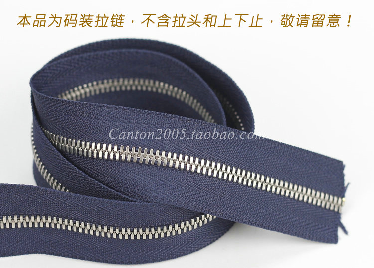 No. 3 two-way deep blue cloth silver color tooth 50 cm