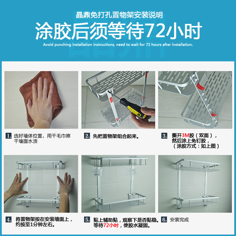 Crystal tripod nail-free space aluminum bathroom rack bathroom thickening punching installation storage wall hanging double-layer free punching