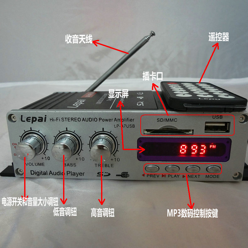 12V car power amplifier Home computer support remote control shutdown Music school LP-A7 radio USB interface SD