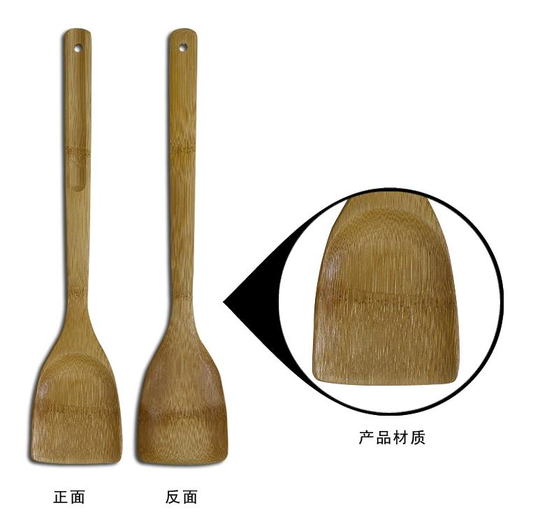 Double gun bamboo shovel non-stick pan with long handle flat handle cooking does not hurt the pot bamboo wood kitchen utensils natural environmental protection without paint
