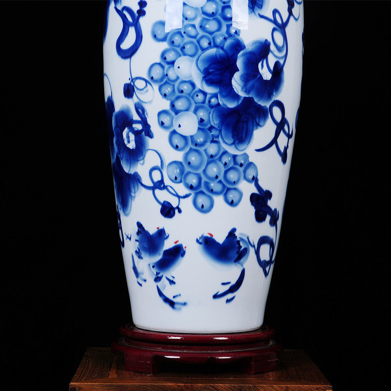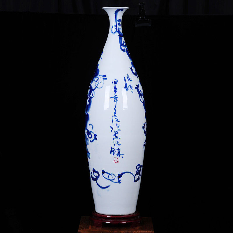 Jingdezhen ceramic vase hand-painted blue and white porcelain floor decoration modern Chinese home improvement study pure handmade collection
