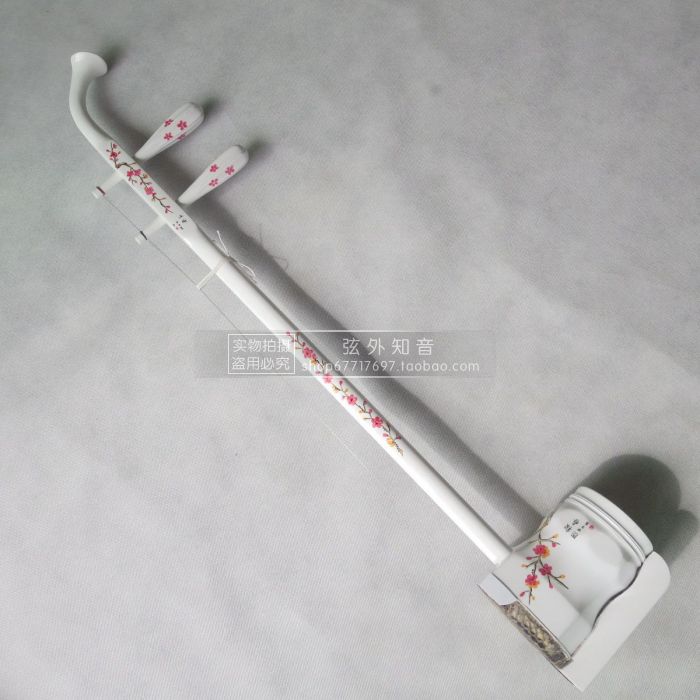 White plum colored painted Erhu Qinghua porcelain pull string instrument Eight square wild Mang leather wood shaft Erhu senor box-Taobao