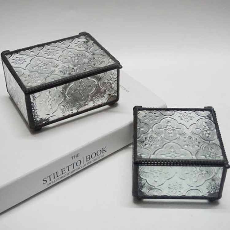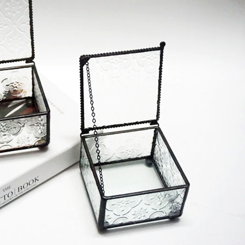 Retro square rectangular first decorated box nostalgic engraving flower accessories containing box jewelry box glass decorated case