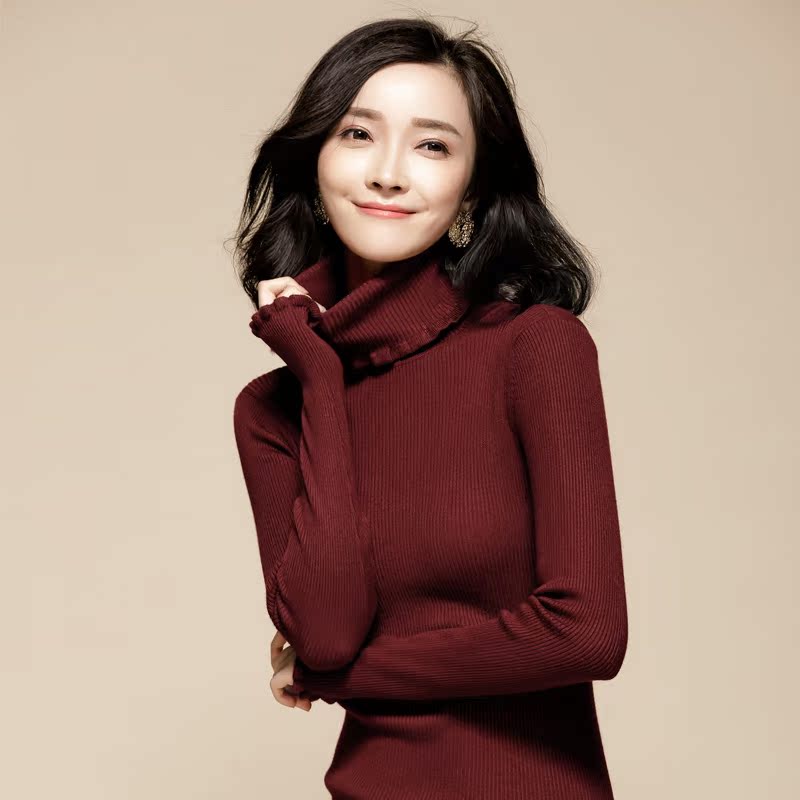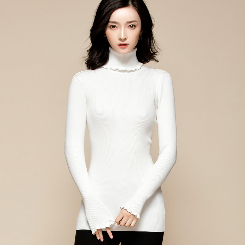 High collar sweater women's sleeve head loose Han version 2021 new autumn and winter knit undershirt 200 catty of fat mm large size