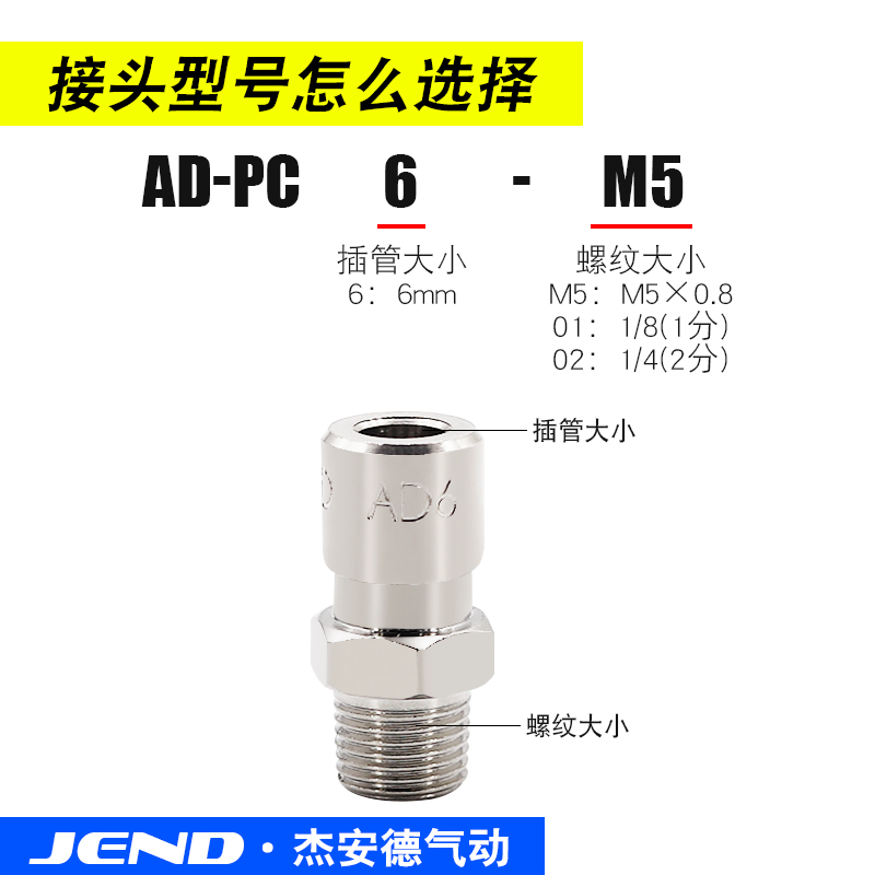 Pneumatic all-copper nickel plated straight through AD-PC quick and quick plug-in AD-PC6-M5 AD-PC6-01 02