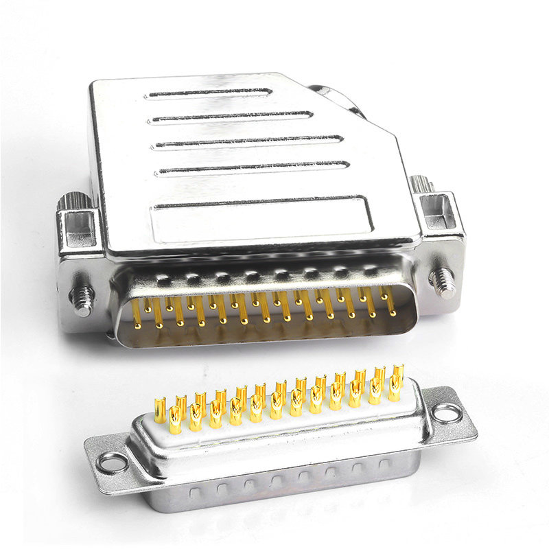 DB25 solid needle gold-plated male head 45 degrees metal shell 2218 DB25 solid needle gold-plated mother head 45 degrees metal shell 2218 DB25 solid needle gilded male head DB