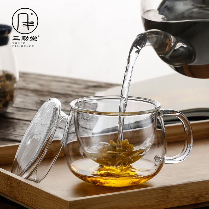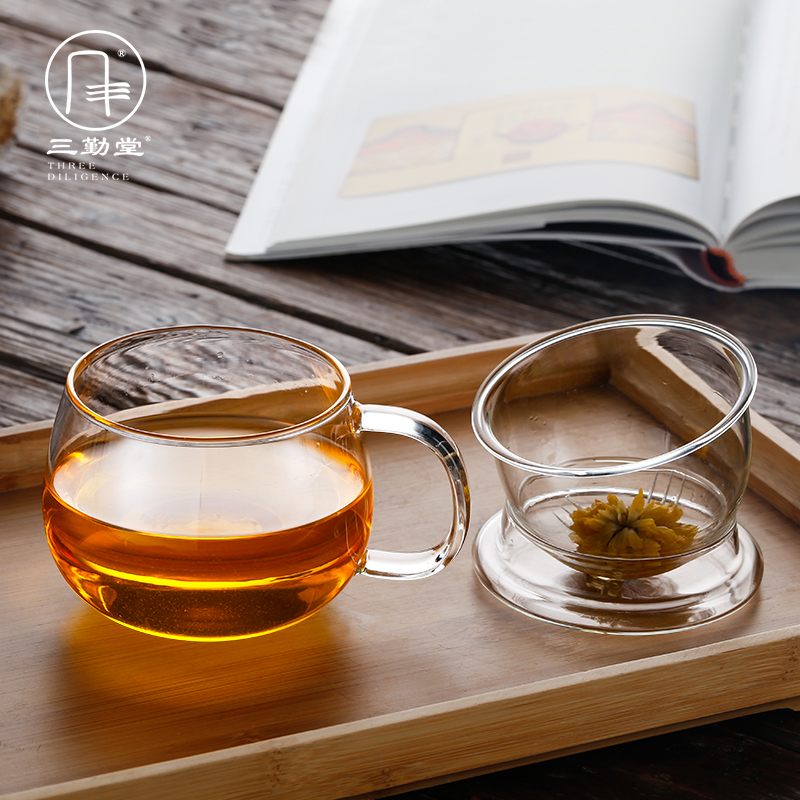 Three Attendance Hall Heat Resistant Glass Cup Liner With Lid Filter Tea Cup Water Cup Tea Tea Cup High Punt Silicon Glass Flower Tea Cup