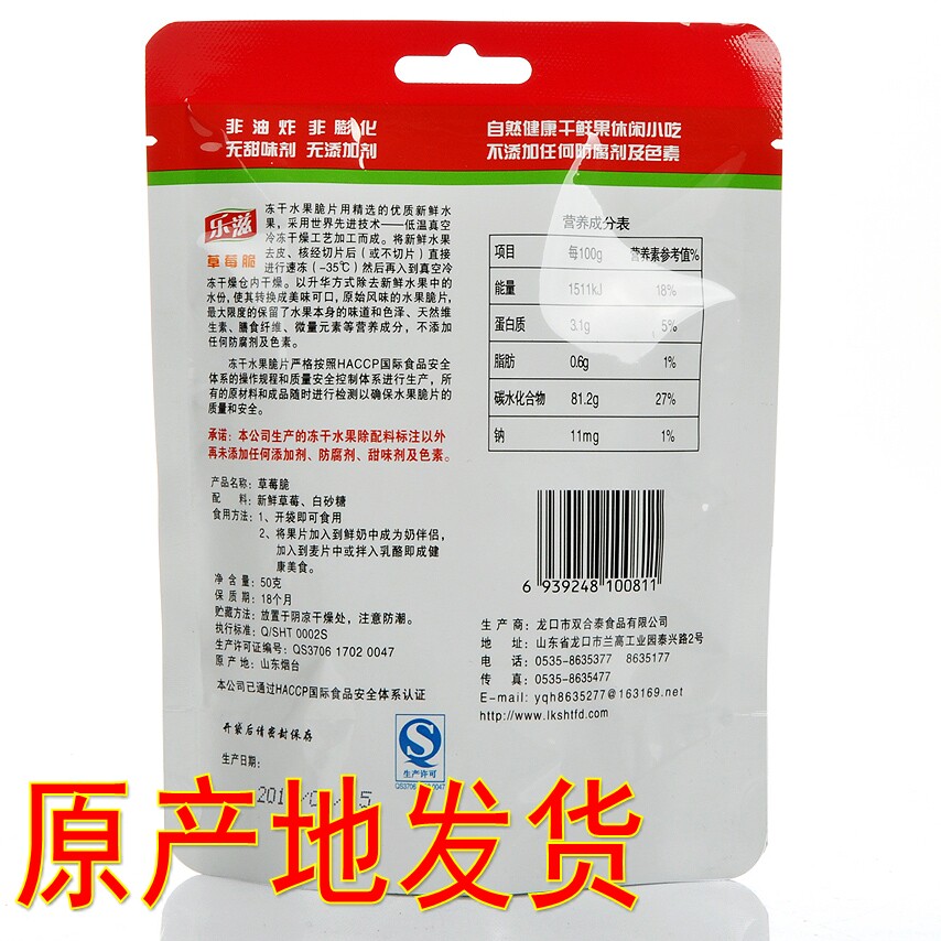 (10 bags) Lezi Le barley strawberry crisp 50g freeze-dried strawberry cut into pieces sweet and sour