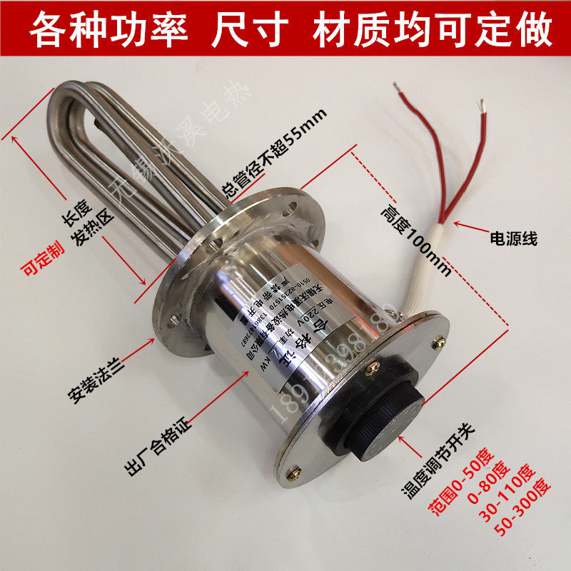 Temperature-controlled thermostatic electric heating tube heating oil explosion-proof electric heating tube heating bar stainless steel flange heating tube heating tube-Taobao
