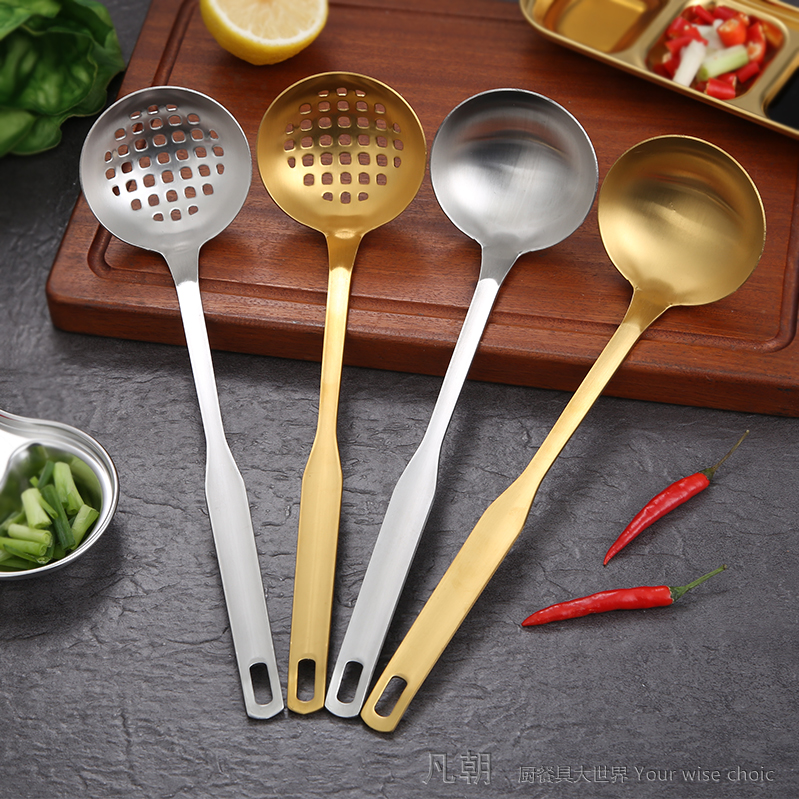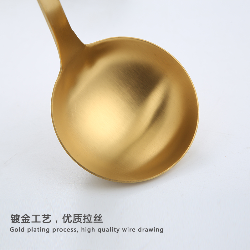 Golden hot pot soup spoon thickened stainless steel brushed soup shell soup colander Household dining room creative spoon golden tableware