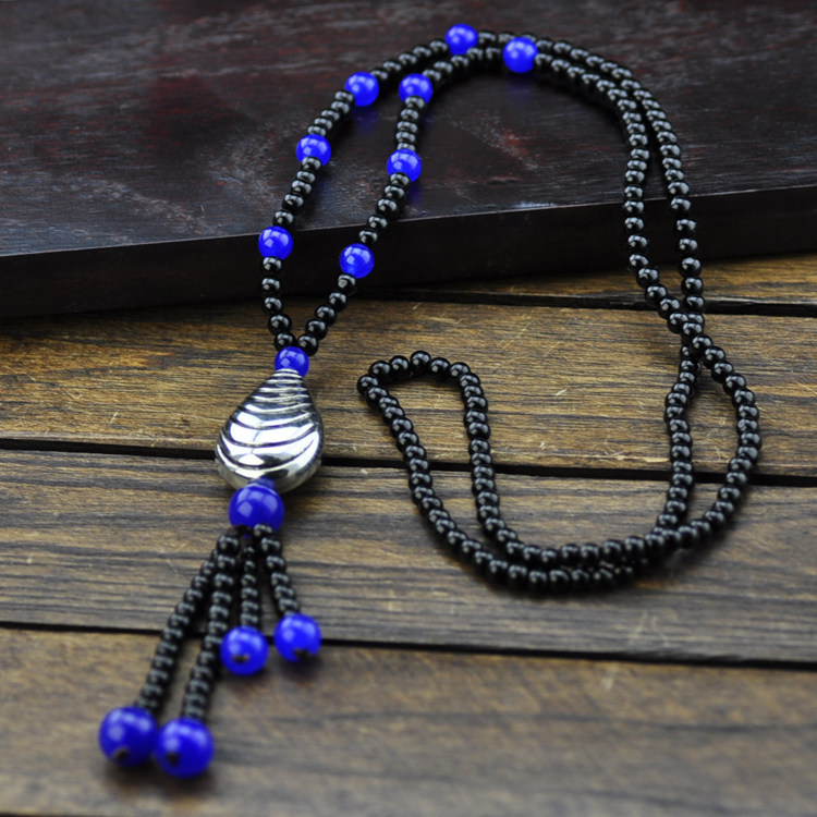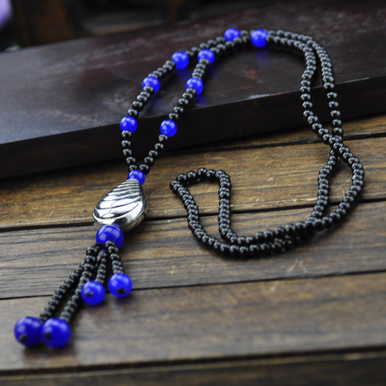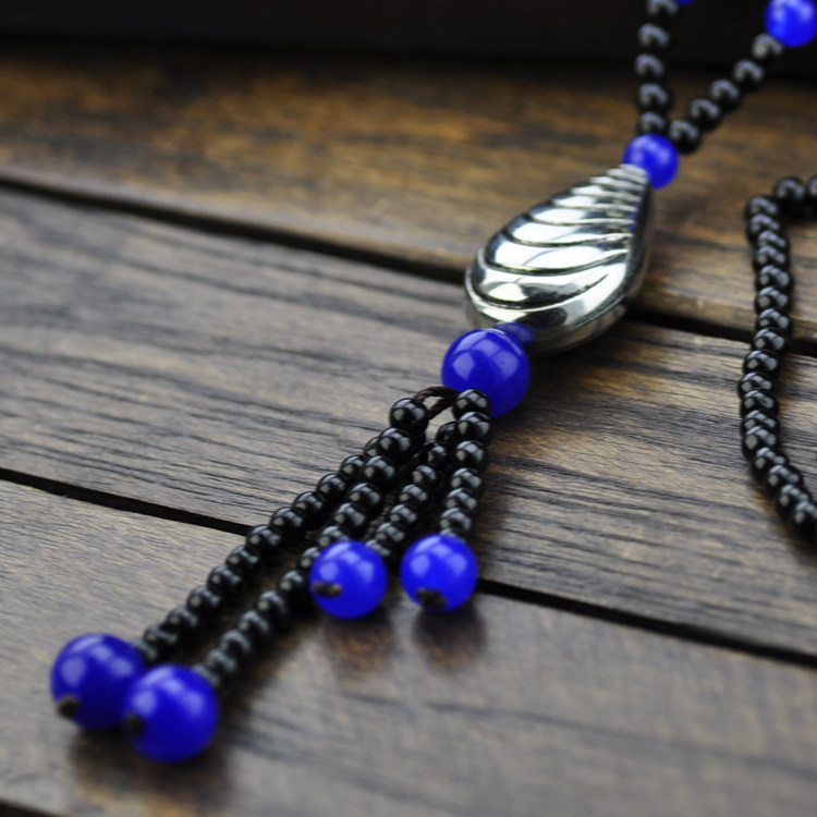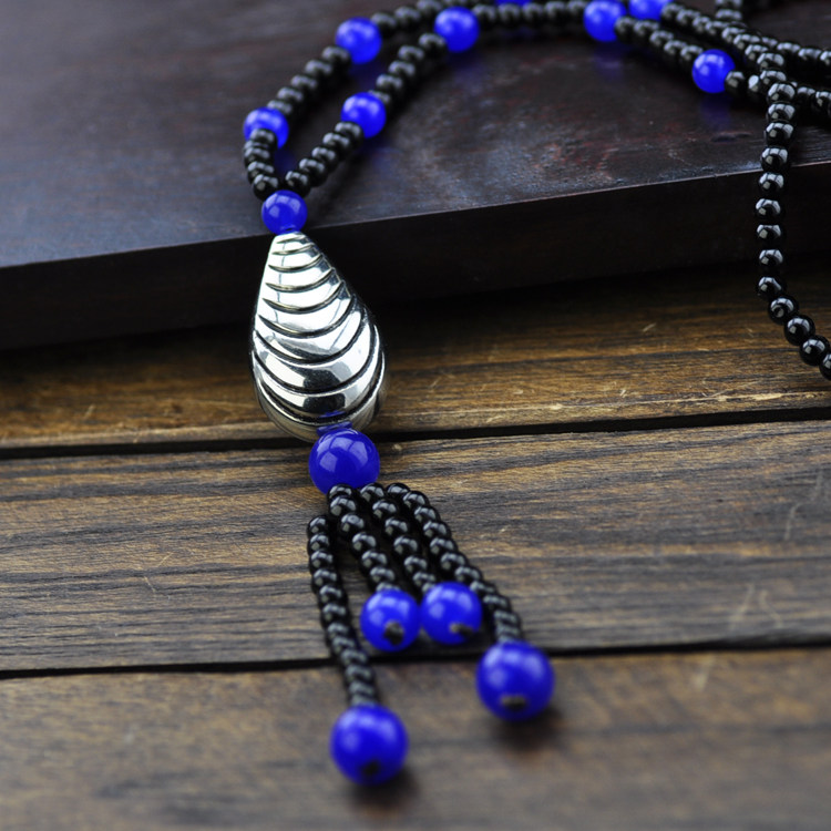Original handmade beaded ethnic style blue agate Miao silver necklace sweater chain women vintage Chinese style jewelry