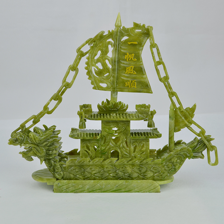 Natural Jade Double Head Jade Sculpture Dragon Boat 28cm Dragon Boat Swing Piece One Sails Smooth Family Residence Ornament Creative Gift