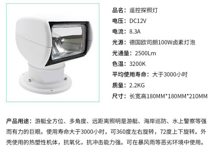 Yacht remote control searchlight boat remote control headlight fishboat remote control headlight for the boat searchlight