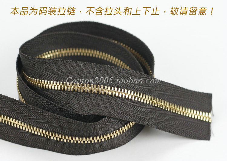 No. 3 two-way dark brown cloth gold teeth 50 cm