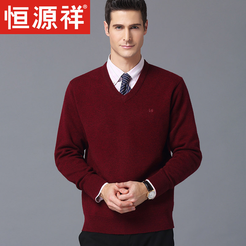 Hengyuan Xiang Sheep Sweatshirt Male Autumn Winter New V Collar Thickened Men's Sweater Men's Clothing Pure Color Middle-aged Dad Sweatshirt