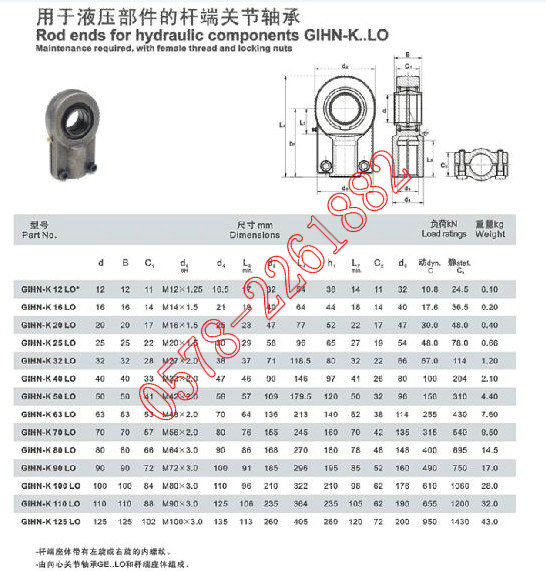 GIHN-K40LO bolt cylinder earring bearing GIHN-K50 63 70 80 90 GIHN-K100LO