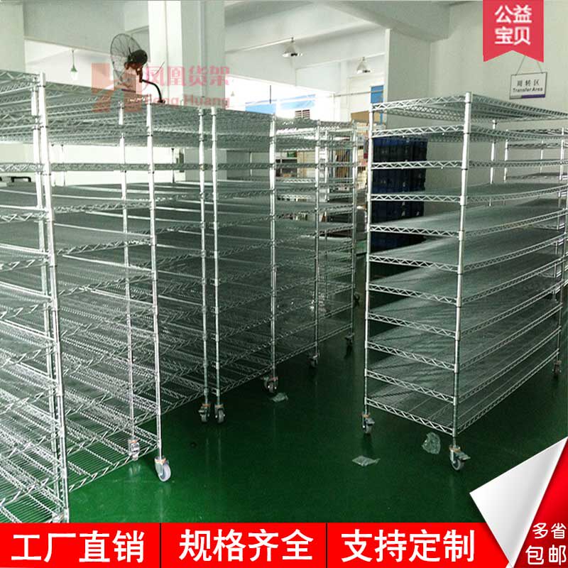 ten Layer Chrome Plated Industrial Wire Mesh Antistatic Material Shelf Weekly Transfer Car Multilayer Workshop Warehouse Moving Band Wheel Shelving
