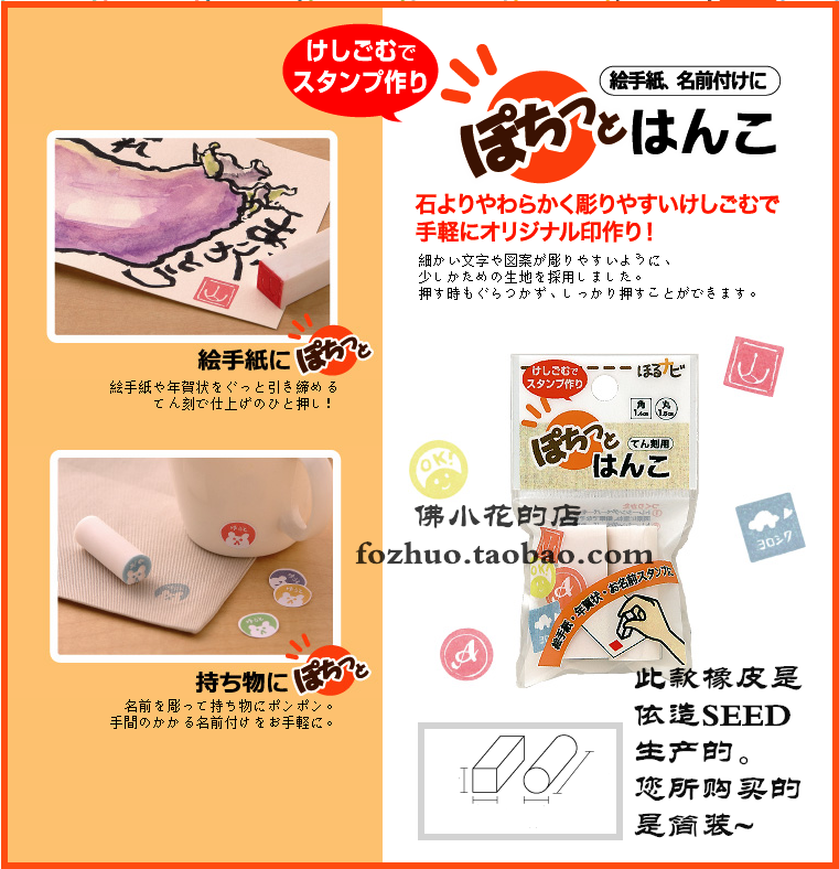 Pure white export Japanese DIY engraved rubber brick mini stereo signed seal annuity cake rubber chapter