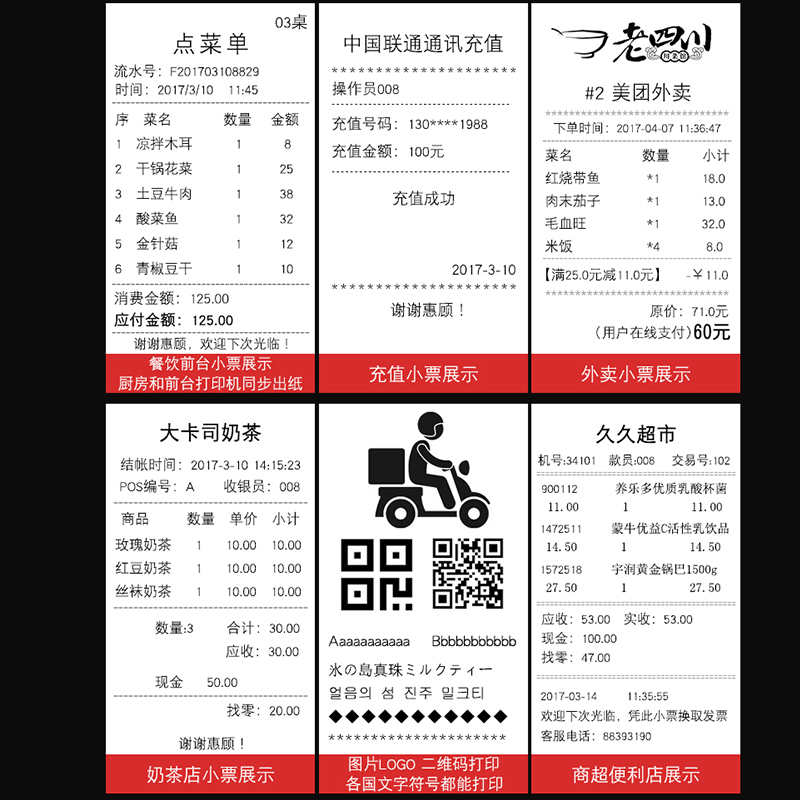 USB port computer printing (ZJ-5890F black) 12 rolls of cash register paper