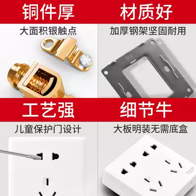 TEP surface-mounted switch socket Ultra-thin open line box panel 86 type wall 1 gang single open double open double cut switch
