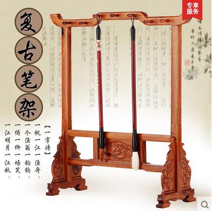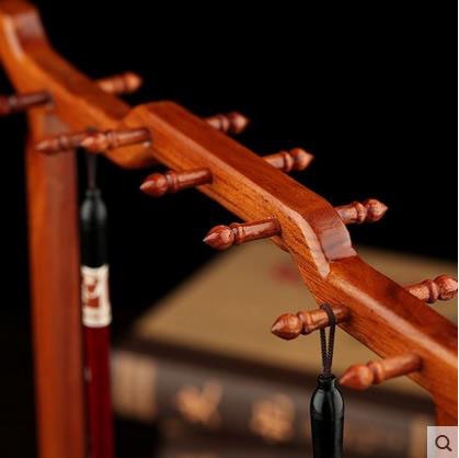 Red Wood Hung Pen Holder Wenfang Four Treasures Supplies Red official hat Brush Holder Pen Hook 14 Brush Hang Solid Wood Pen