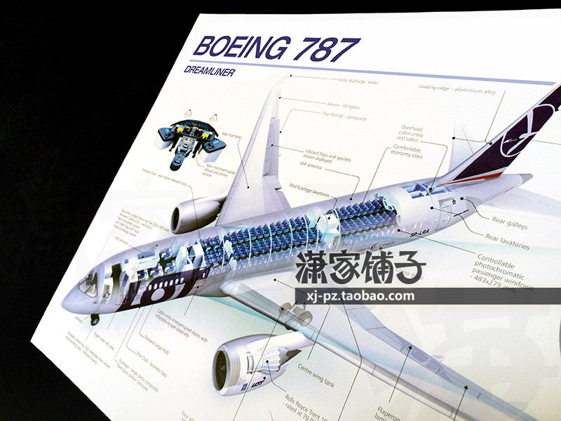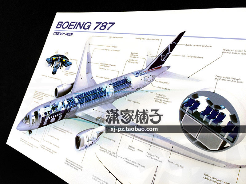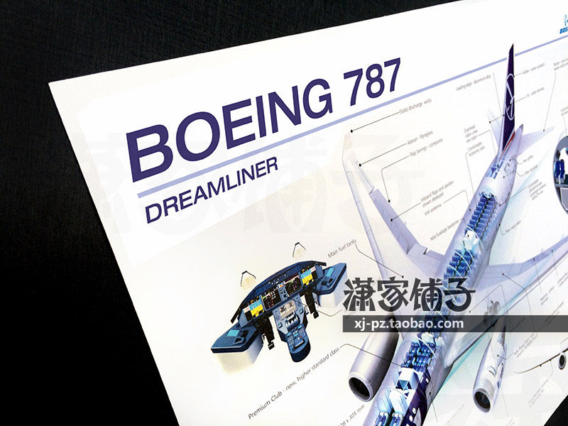 U.S. Boeing boeing 787 Dreamliner Airliner Cross-sectional View Blue Drawing Poster Decorative Painting
