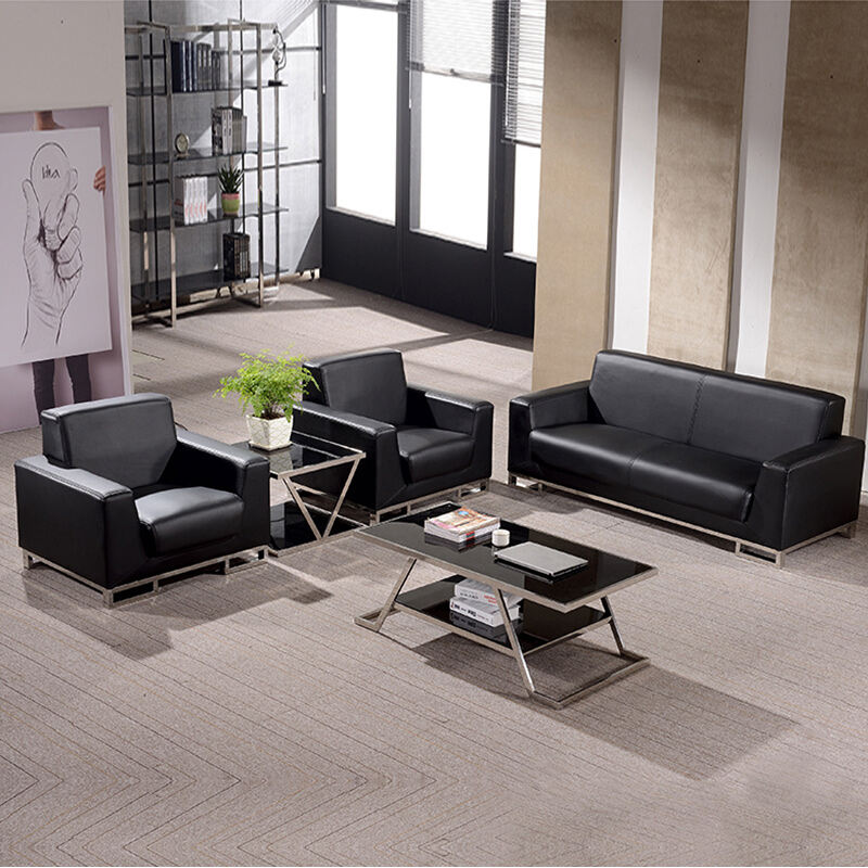 Office sofa coffee table combination office reception business trio leather sofa rest area sofa
