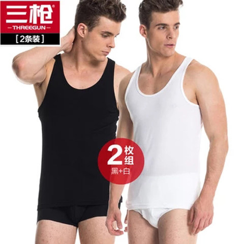 Three-gun vest men's summer slim fit in pure cotton thread with elastic tight fit full cotton knit artificial word sports cross-bar tide