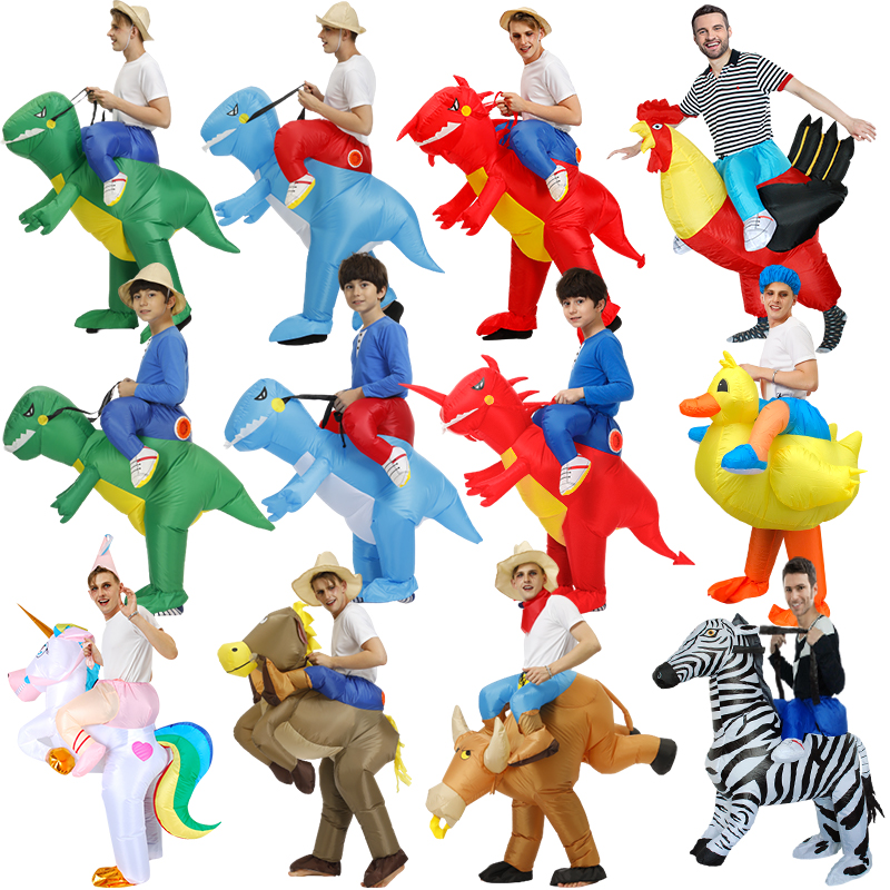 Christmas Performance Costume Adult Children Animal Unicorn Poni Dinosaur Inflatable Clothing Fake Leg Magozoic Pants