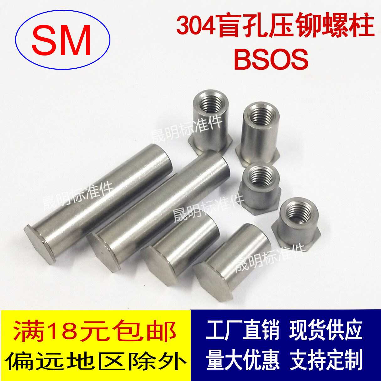 Stainless steel 304 blind hole riveting nut column Pressure riveting nut column Pressure riveting screw M4x4~-M4x48 bottom hole 7 2