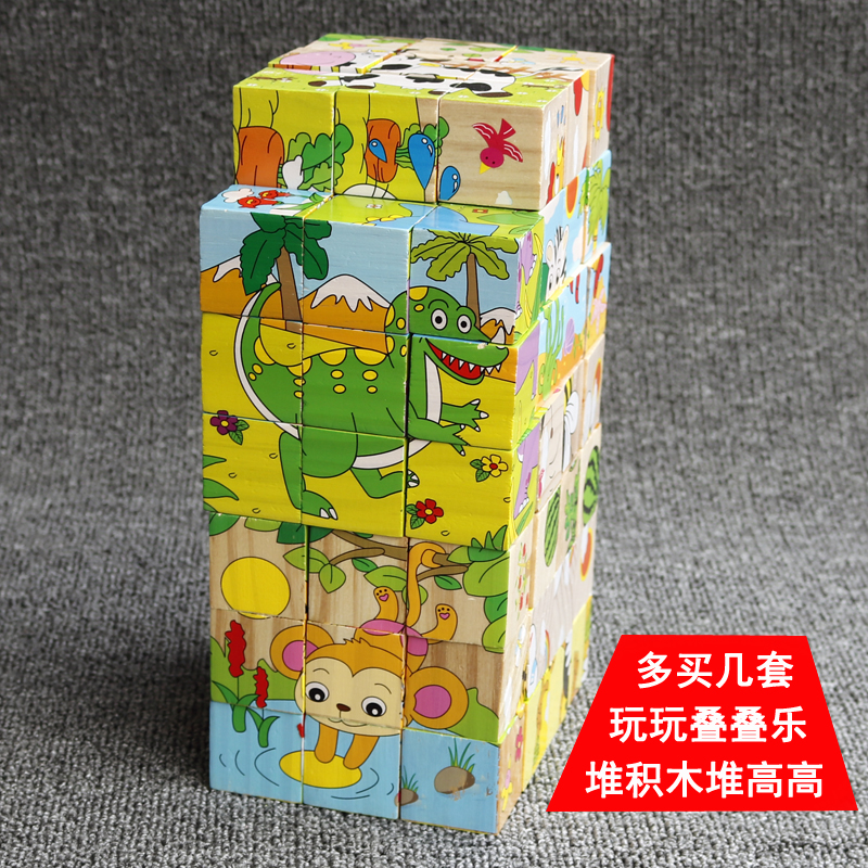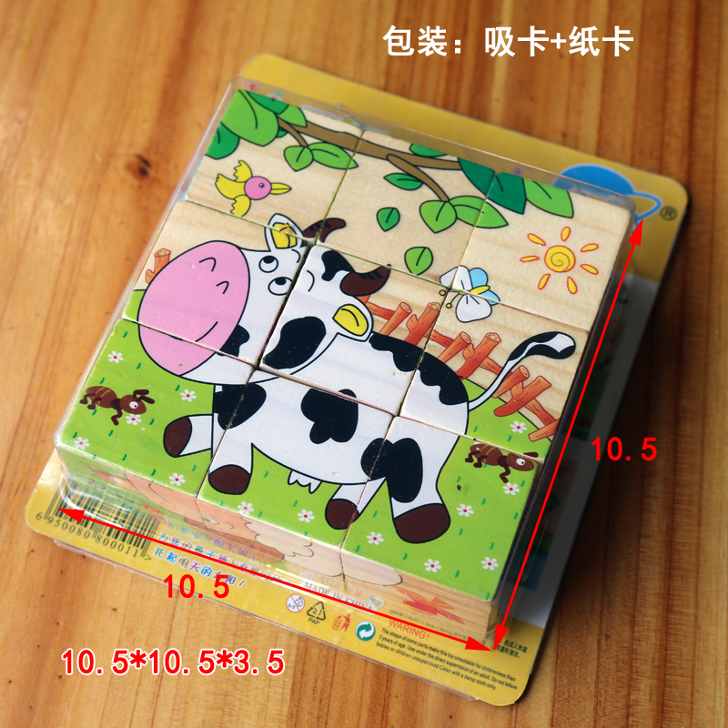 Six faces painted wood 9 grain 3D Cubism Jigsaw Wooden Kindergarten Tong Babies Early Education Puzzle Toys 3-6 years old