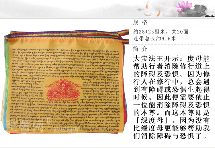Greenery Mother's cursive mantra 21 degrees Mother Zan Marriage Family Tibet Five Color Wind Horse Flag with Flag Knot Edge