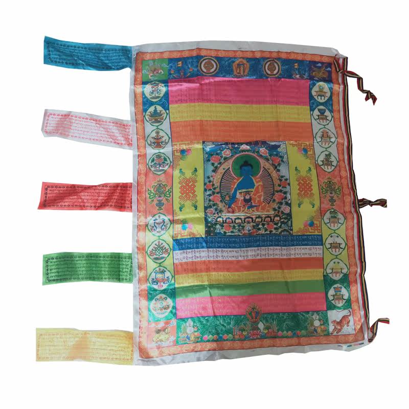 The pharmacist hangs the prayer flags vertically, supplies Tibetan Tantra, Tibetan five-color wind and horse flags, and the flags are of good quality.