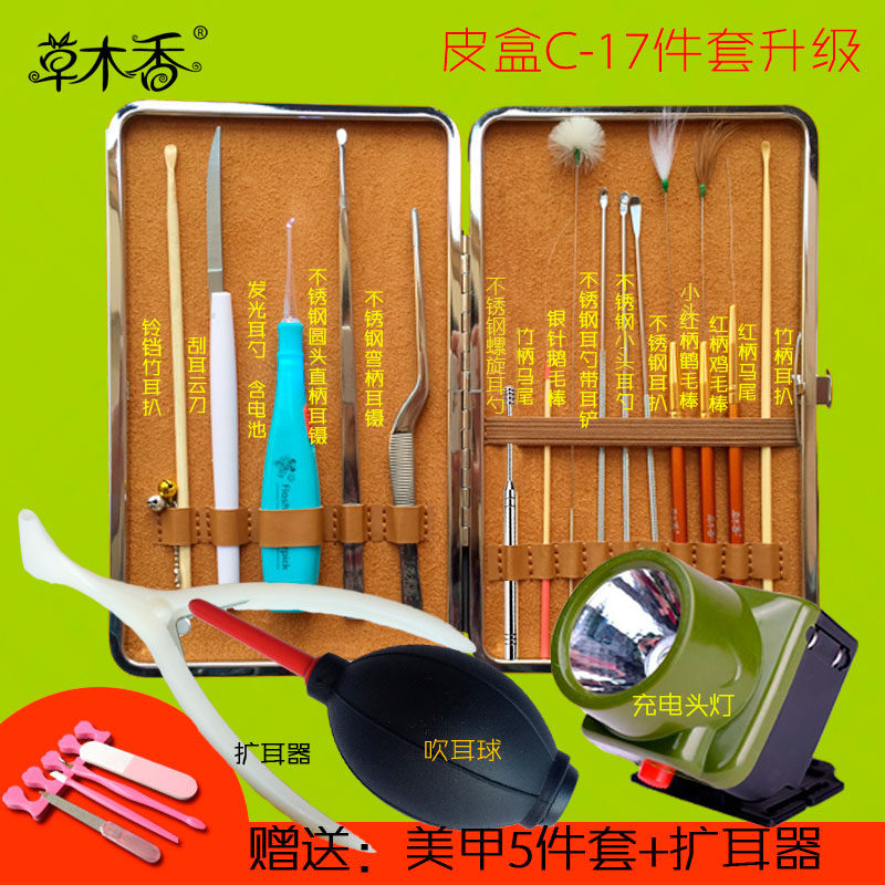 15-piece set of 5 luminous ear picks 15-piece set of 15 luminous ear picks, ear expander, ear blower ball 15-piece set of 15 luminous ear picks, ear blower, ear expander, headlamp, battery 5-piece set 15