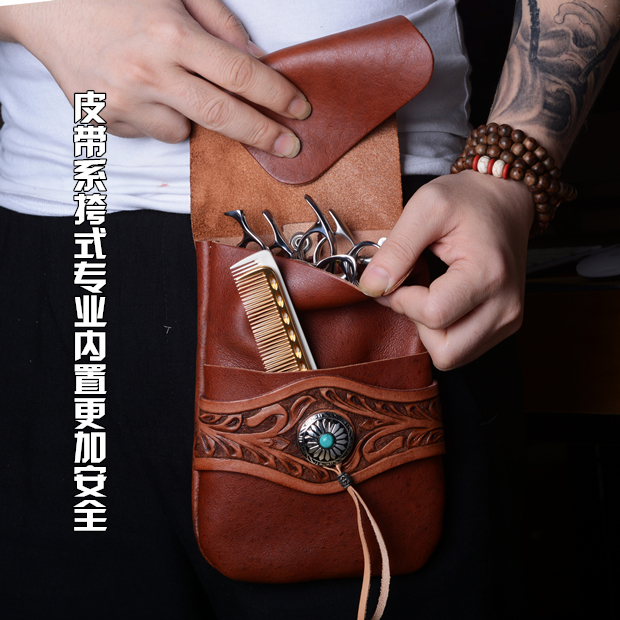 Master's special leather scissors bag hair bag hair bag hair kit 4 pack personality scissor bag