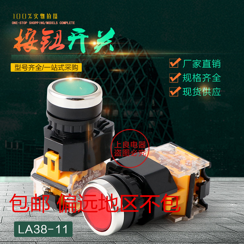 Button switch power start stop self-reset LA38-11BN points move flat button switch red green 22mm
