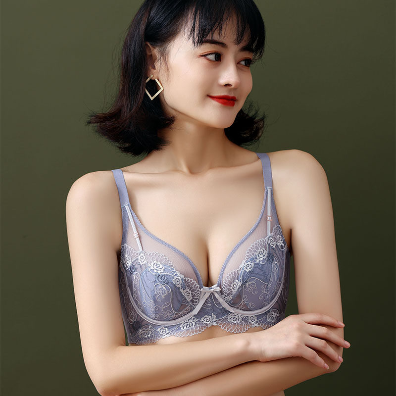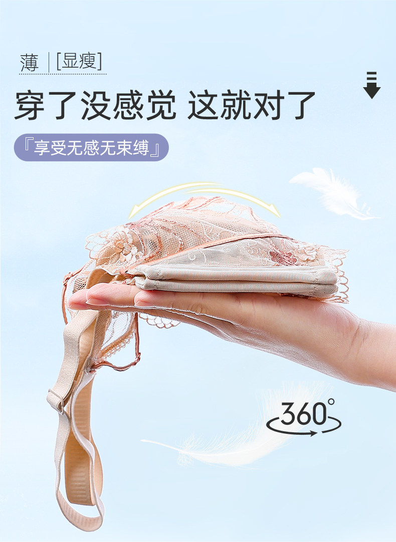 Women's large size underwear, rabbit ears, anti-sagging, thin mold cup, gathered sexy lace, adjustable underwear, big chest and small
