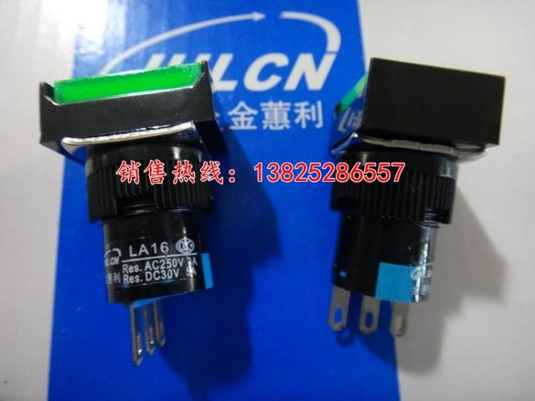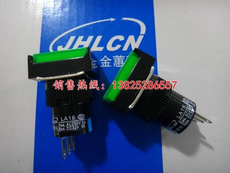 Jinhuili LA16 button switch JH16J-11S rectangular self lock without lamp green 3 feet