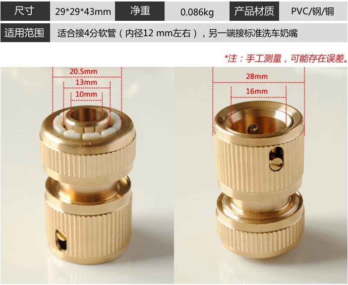 Four-point hose water joint 1 2 water pipe joint plastic joint accessories 4 points copper car wash water gun quick joint